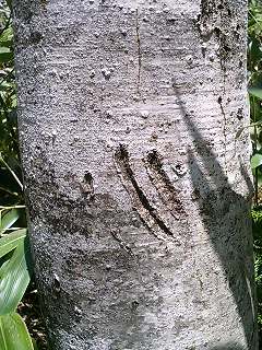 くっきりと深く大きく残っているつめあと、きっと熊さんだと思います。