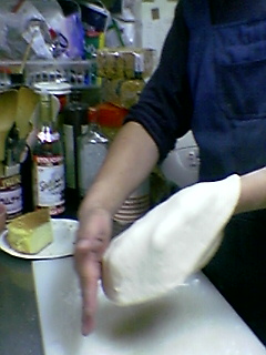 うわさのピザ職人(自称) フランスパンの生地でオーナーがまかないピザを作っちゃいました。ペタペタパンパンのびのび...だんだん生地ができてきました。ピザソースをたっぷり塗って玉ねぎ、ピーマン、トマト、オリーブ、サラミ、チーズをたっぷりたっぷりのせてオーブンへ... まもなく完成です!!! ツイート karewara 関連