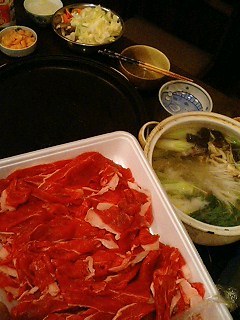 ホットプレートの隣、くつくつとした鍋、もちろんしゃぶしゃぶ用です。