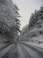 雪景色がとてもきれいですが、脇見運転厳禁です。