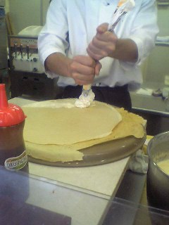 クレープが巻かれるちょっと前 グランデコの”さんじや” いつもいつもクルクルと包むところを見てます。 くるくるぅ~とキレイに巻かれていくのが、面白いっ! 手元を撮らせてもらいました。 すごい生クリームの量だわぁ~、美味しそう♪ お総菜クレープだとクレープを焼いてるプレート?の上で小手を使いながらクルクルぅ~。 技です、どれも撮らないと! ツイート karewara 関連