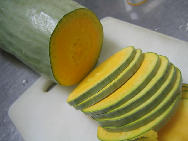 ヘチマ似のかぼちゃ かぼちゃをいただきました。 コレ、かぼちゃです。 見るからにヘチマですが、ちゃんとかぼちゃ。 切ったらやっぱりかぼちゃで、すごくキレイなオレンジ色。 名前は”すくなかぼちゃ”というそうで、岐阜で購入されたとか。 皮が薄いから、普通のかぼちゃよりもすごく切り易いし柔らかい。ざくっと切れてしまって、とても扱いがいいです。 天ぷらにして食べてみました、うみぁいっ! 面白いですねぇ、知らないモノがまだまだありますねぇ~。 ツイート karewara 関連