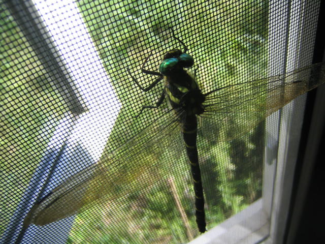 暑いので食堂の窓を開けていたら、飛び込んできた大きなオニヤンマ。