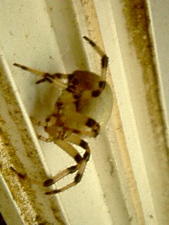 040909_0932~0002.jpg出かけようと思い、戸締まりをしているとちょっとグロテスクな大きな蜘蛛がいました。 背中というのか、お尻というのか、大きな薄緑色の袋を付けています。 そこに4っの穴が開いていて...。よく観察するものじゃないですね。 でも、朝蜘蛛は縁起がいいと言われます。懐に入れたり、財布に入れたり。蜘蛛は天気の良くなる日に網をかけるそうです。 台風も過ぎ去り、今日は良い天気になりそうです。