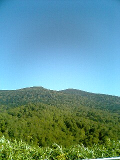 041001_1401~0001.jpg高い方の山が福島と山形の県境の吾妻連峰西大テンです。 標高1900mです。まだ、紅葉は早いようですね。
