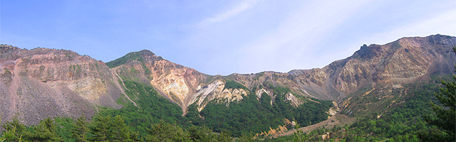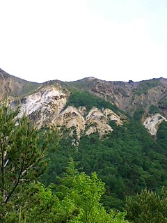 磐梯山登山「火口壁のパノラマ画像」