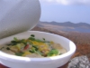 歩いて登った猫石からの眺めを満喫しながら、カップラーメンをすする。