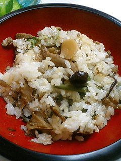 いつもはチャーシューを食べるんですけど、「山菜炊き込みご飯」を発見。